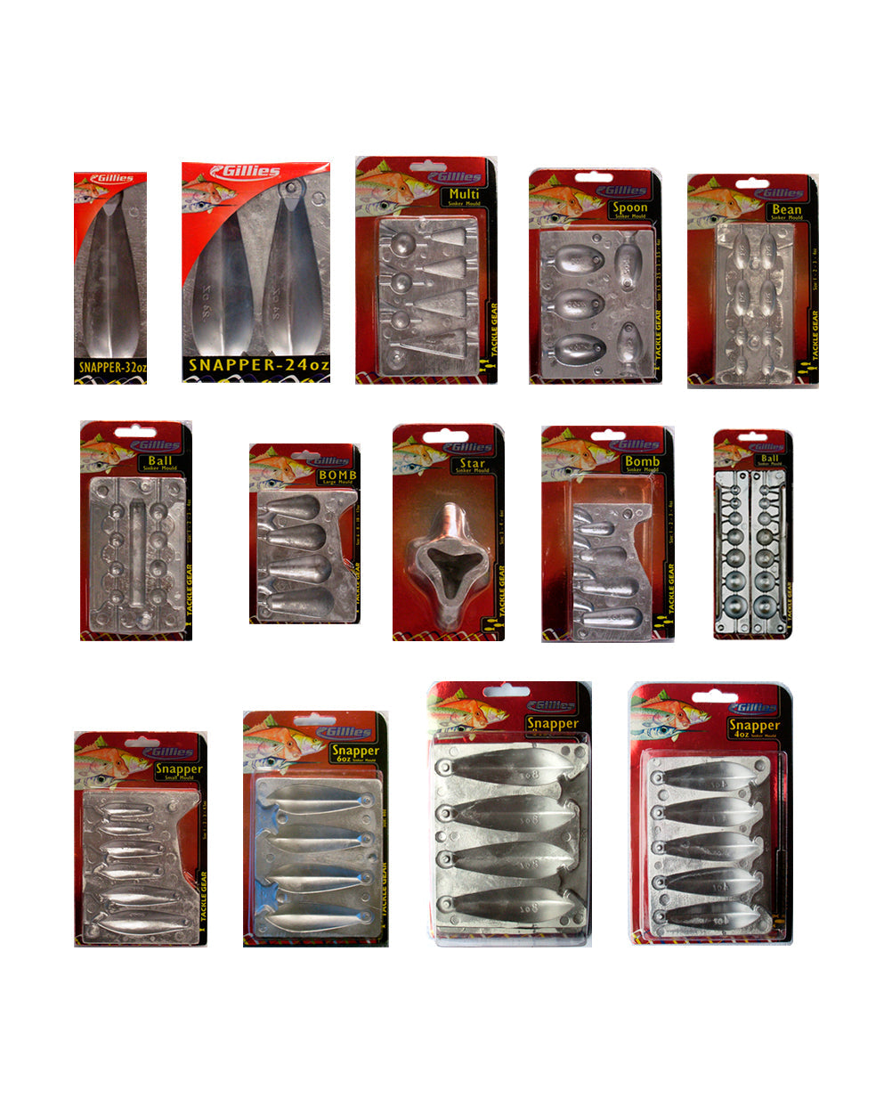 Full range of Gillies sinker moulds so you can save by making up your favourite sinkers yourself.