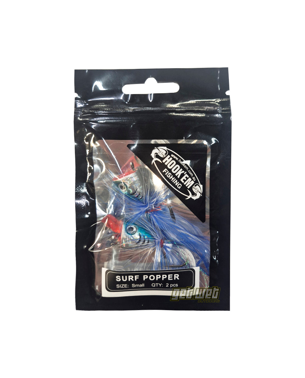 Hookem 2 pack small surf poppers. great for salmon. Taylor. flathead and many more species. Best added to a mono paternoster rig.